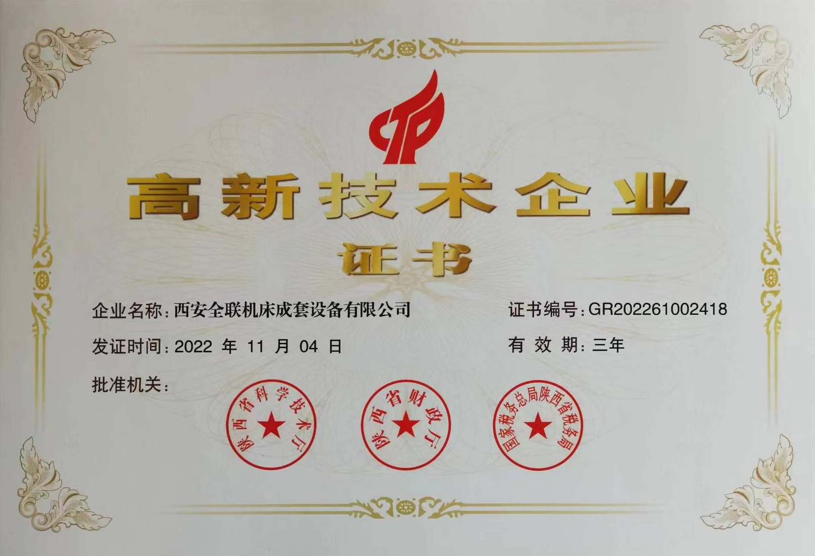 西安宜昌凯大医疗器械有限公司(4G网站)2025年12月3日(ri)榮獲高新技(ji)術企業證書(shu)