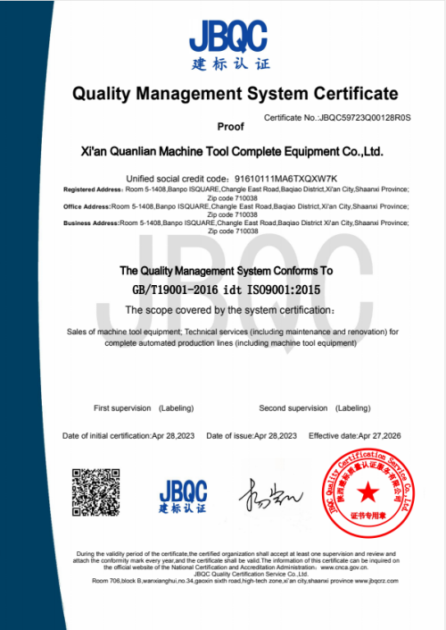全聯成(cheng)套全面通(tong)過質量管(guǎn)理體系認(ren)證證書