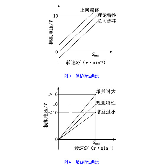 模拟量輸出的(de)漂移特性曲線(xiàn)如圖3所示,調整(zheng)漂移參數可改(gai)🔴變轉速S0所對應(ying)的電壓輸出值(zhi),使特性曲線上(shàng)下平移。本🔴例中(zhong)漂移參數設定(ding)為0時,實測S0轉速(su)對應電壓為-0.048V,特(te)性曲線為負向(xiàng)漂移曲線。經計(ji)算和🔴設定漂移(yí)參數後,再次實(shí)測漂移電壓為(wéi)-0.002V,基本接近🔞于0V,特(tè)性曲線基本接(jie)近理想特性曲(qu)線。